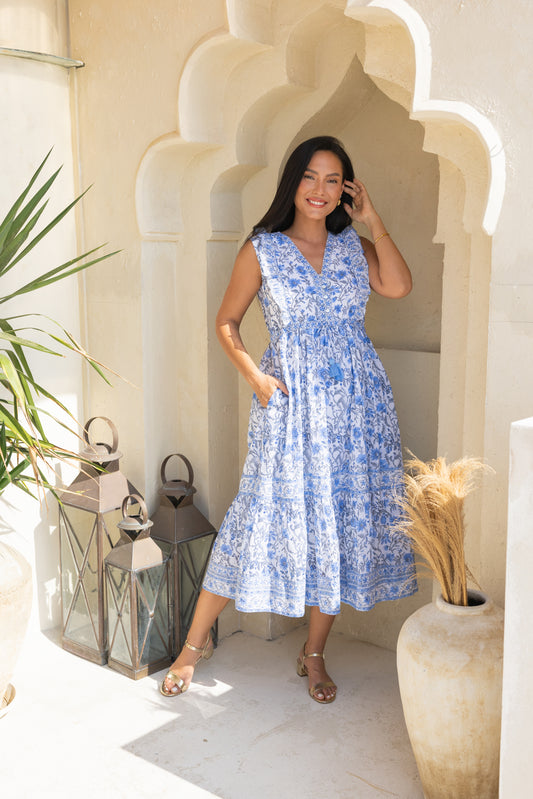 Lilia Sleeveless Dress in Vintage Blush Pink